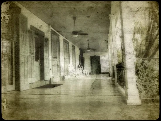 The front porch of the Myrtles, where William Drew Winter was shot and killed. His murder was never solved, however, he did not -- as the legends claim -- stumble up the main staircase and die on the seventeenth step.